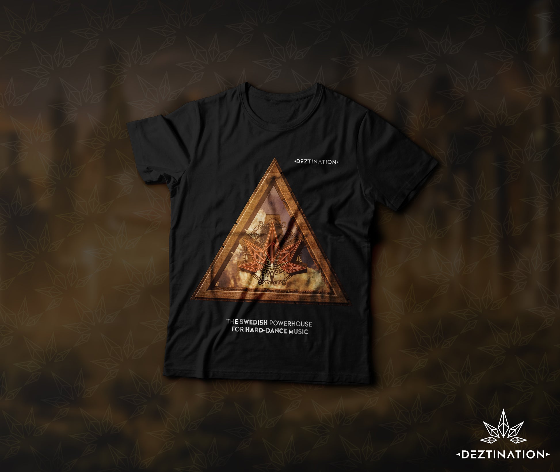 Within this ancient geometry lies a captivating window to the heavens. The center of the triangle reveals a celestial scene, where clouds dance against the canvas of the sky. Yet, the magic intensifies as you discover a luminous secret – our iconic Deztination Chrystal logo, intricately carved from the very stones that shape this extraordinary triangle.